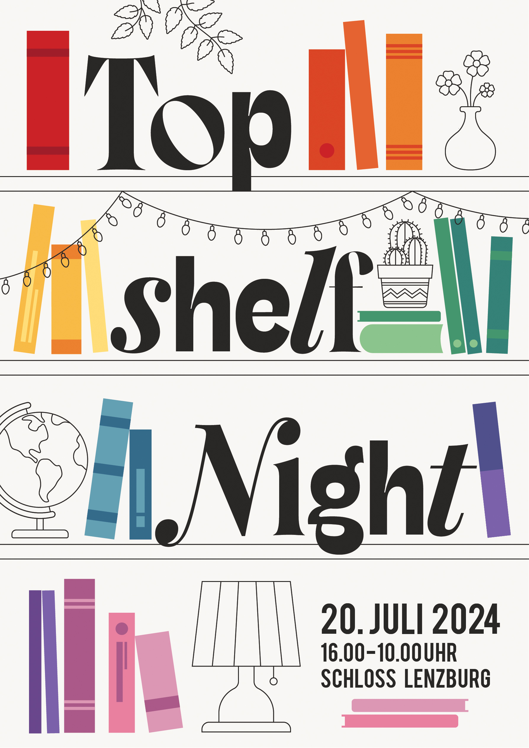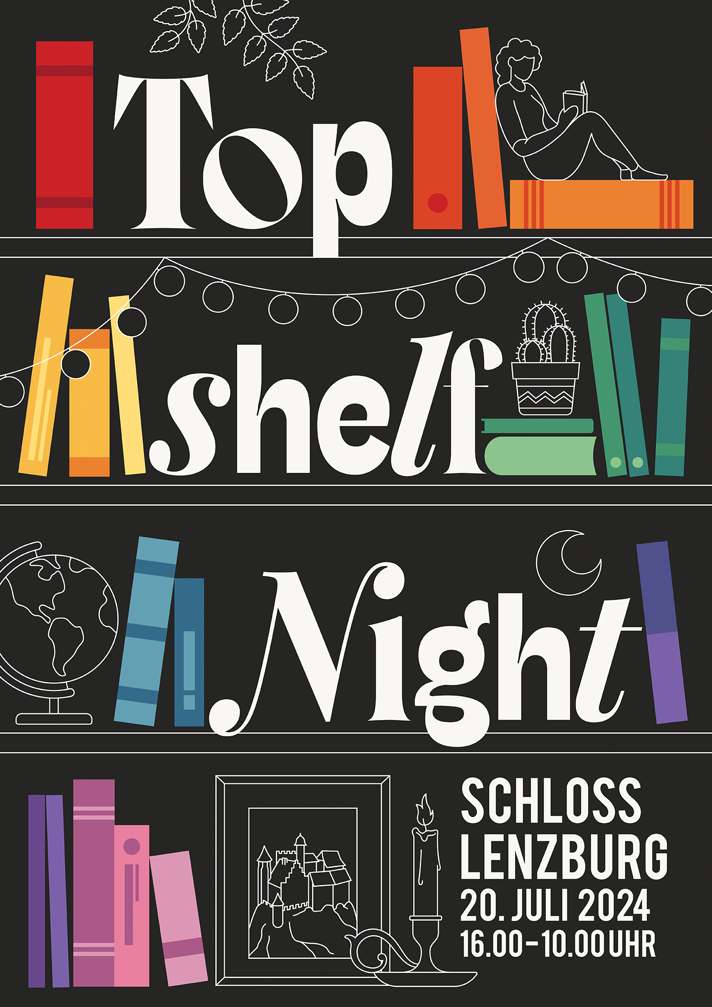 The Topshelf Night is a new festive event which took place in the summer of 2024 for the first time and will now take place annually at the castle of Lenzburg. Topshelf Night is all about books and literature. Upcoming as well as established authors and general book lovers join the event, give talks, organize workshops, exchange ideas and trends, read and discuss together, and dive deep into the world of books for a day and a night at the beautiful old castle in Lenzburg, Switzerland.